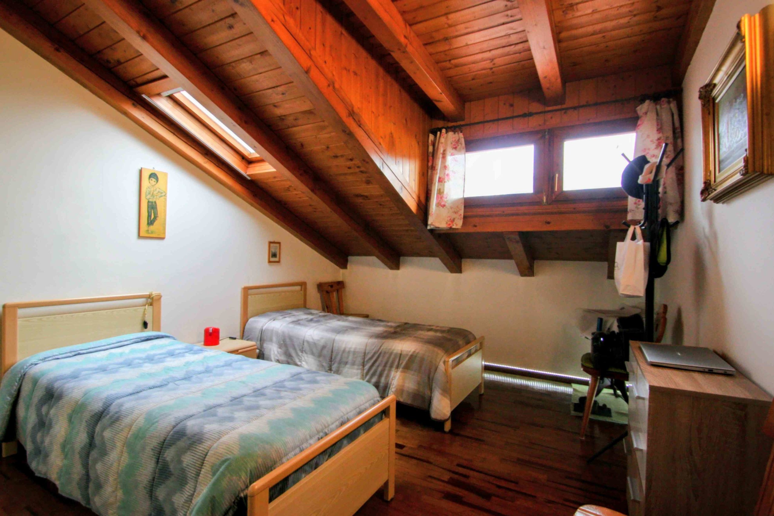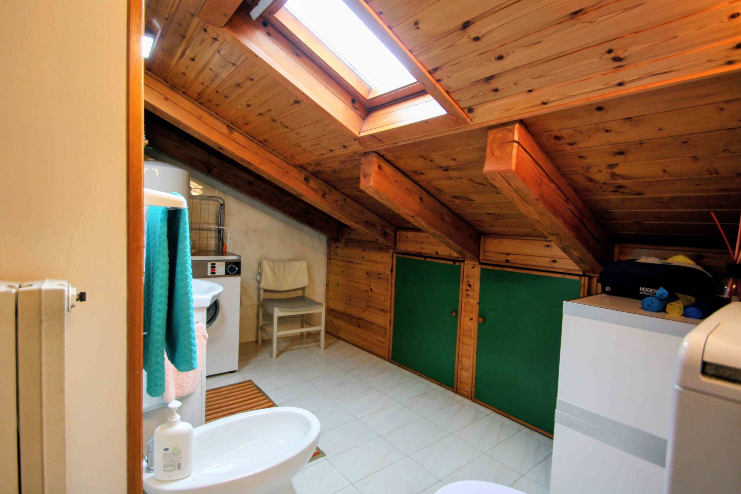 La mansarda occupa tutto l’ultimo piano di una palazzina con soli 5 appartamenti, e si distingue soprattutto per la terrazza con sole e vista, e la bella finestratura del soggiorno. Ci sono poi 3 camere matrimoniali, un bagno principale ed un servizio.
