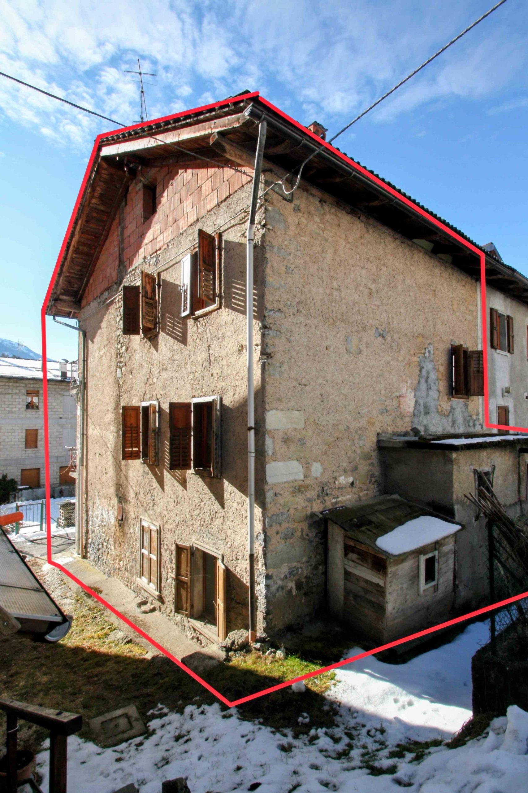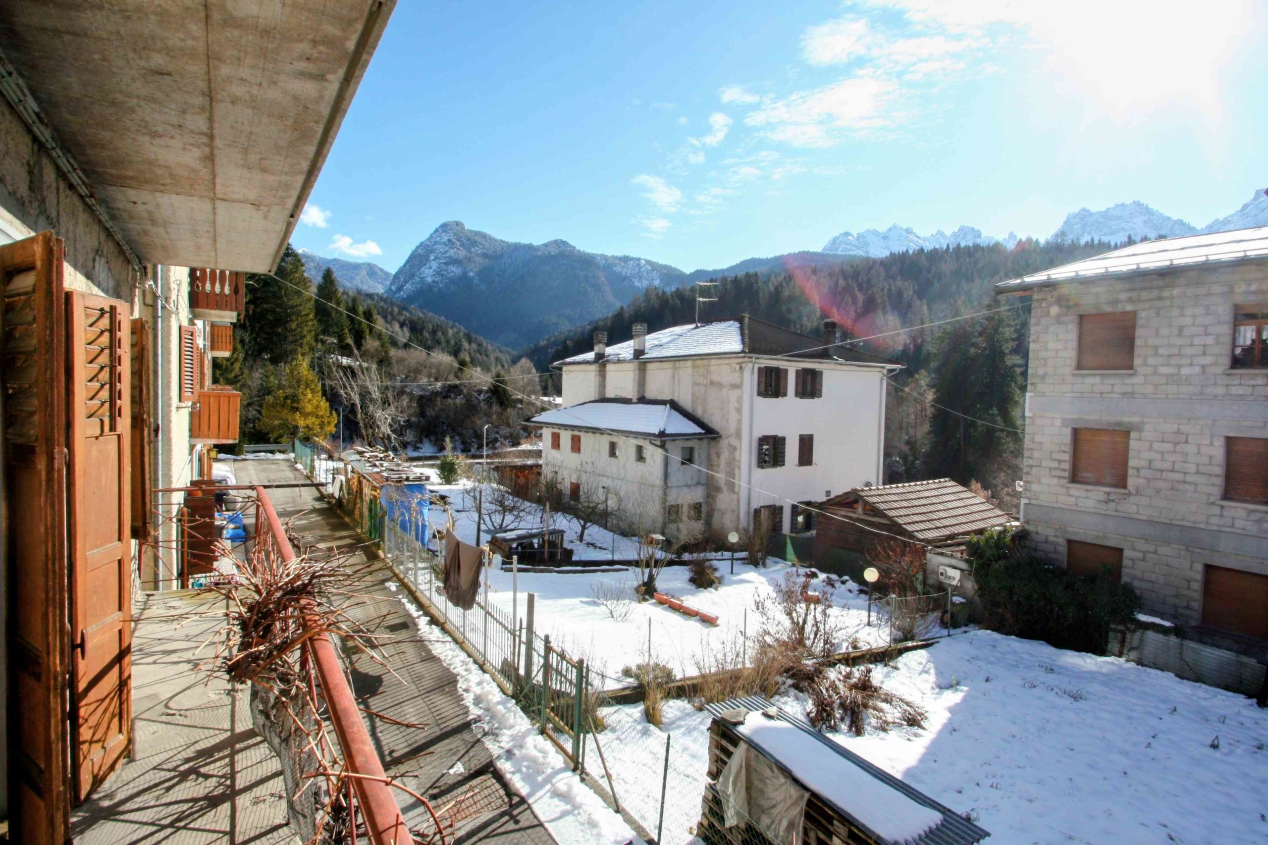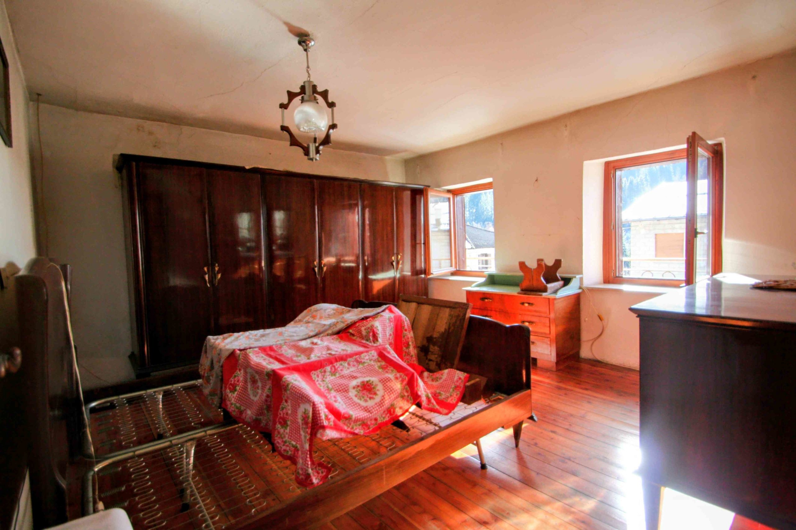 Ci troviamo in un angolo soleggiato e privo di traffico della bella frazione di Pelos, Vigo di Cadore. Qui è disponibile una porzione indipendente di casa, con 3 lati liberi, con una superficie lorda di 160 mq, soffitta e balconi esclusi, pronta per essere ristrutturata e trasformata in una comoda e ampia casa per oppure in 2 o 3 piccoli appartamenti.
