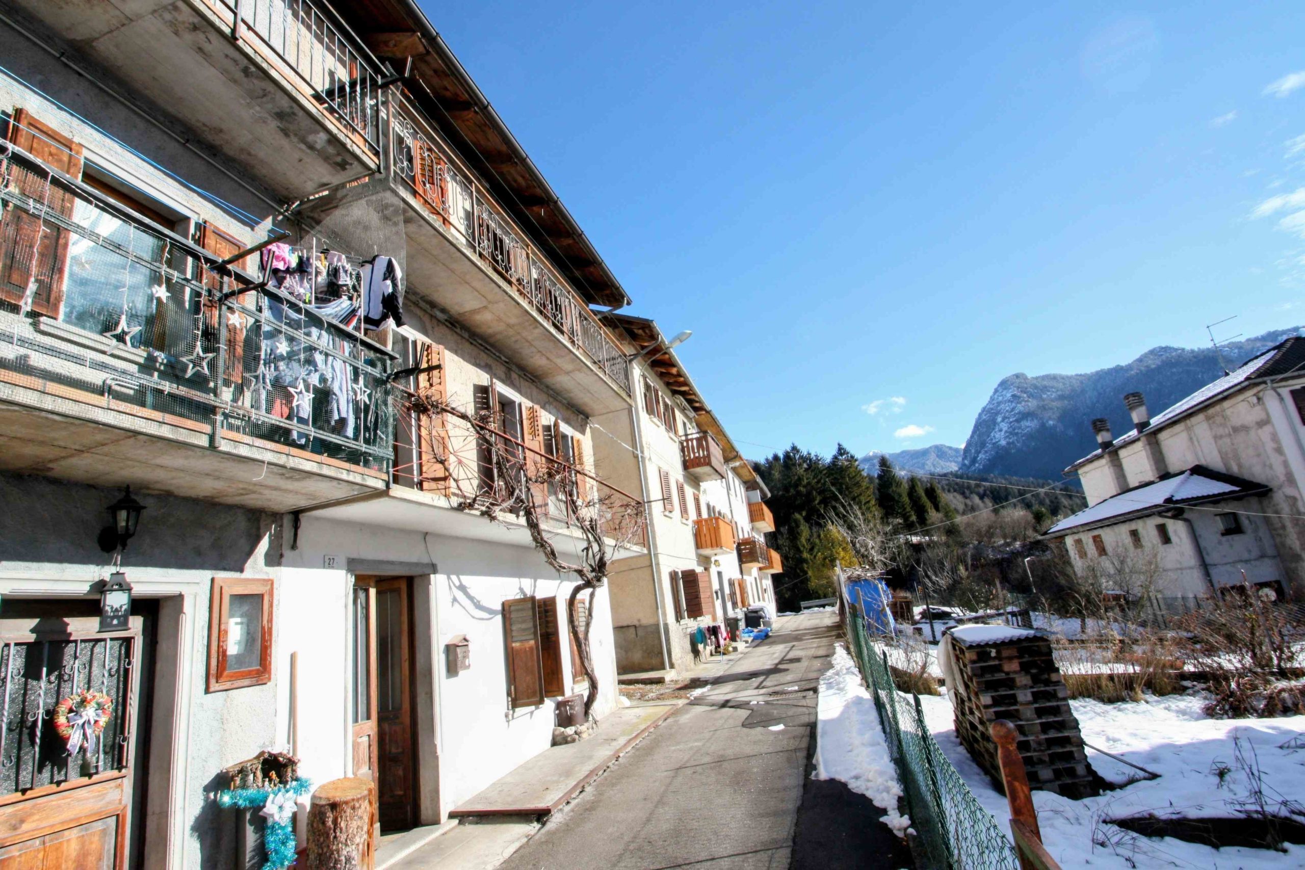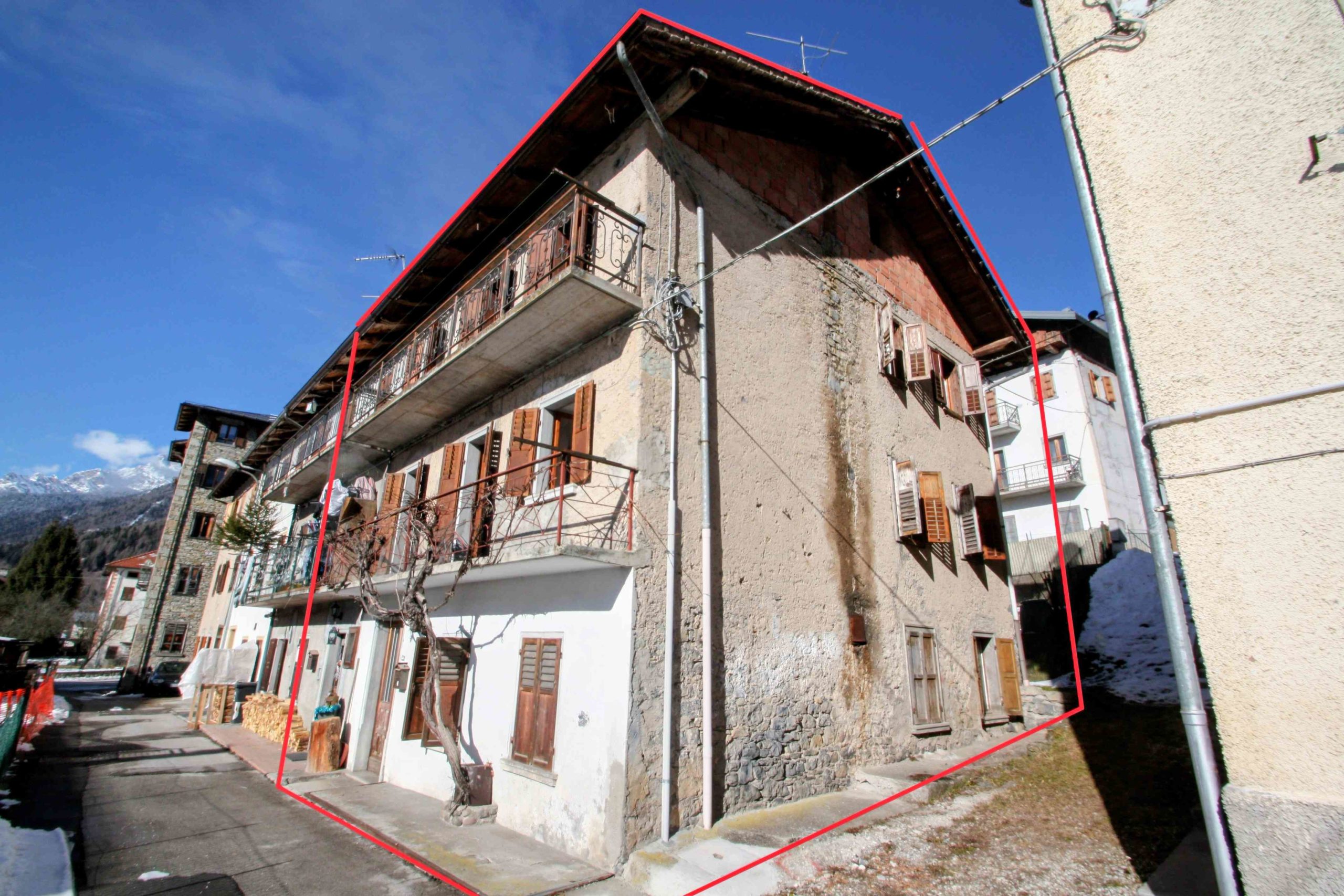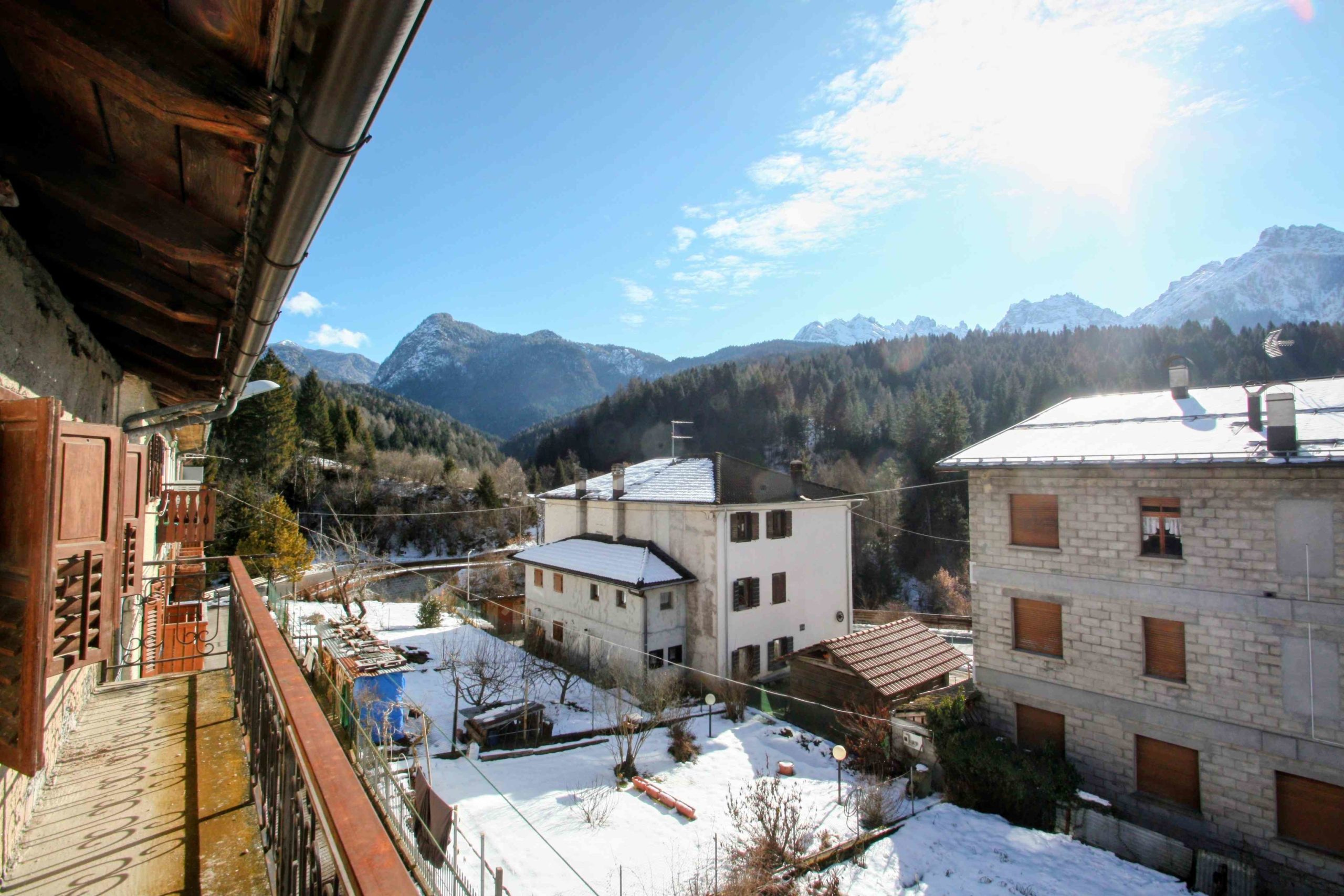 Ci troviamo in un angolo soleggiato e privo di traffico della bella frazione di Pelos, Vigo di Cadore. Qui è disponibile una porzione indipendente di casa, con 3 lati liberi, con una superficie lorda di 160 mq, soffitta e balconi esclusi, pronta per essere ristrutturata e trasformata in una comoda e ampia casa per oppure in 2 o 3 piccoli appartamenti.